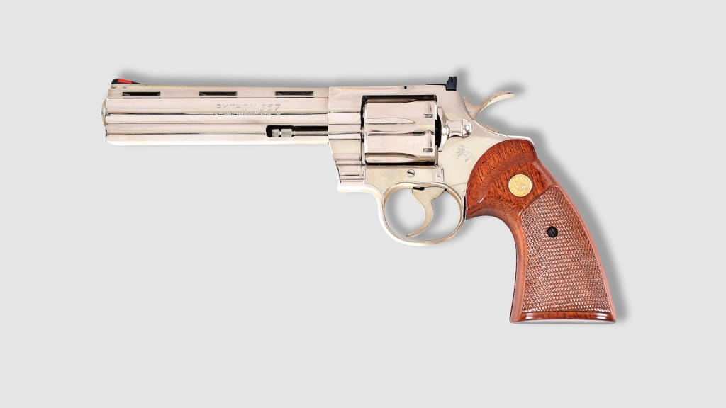 柯尔特蟒蛇左轮手枪(英文:Colt Python,中文又称“柯尔特巨蟒”,香港地区俗称“费臣357左轮”)是美国柯尔特制造公司(Colt’s Manufacturing Company)于20世纪50年代研制的一款.357马格南口径转轮手枪,核心定位为“高精度警用、自卫与竞赛级武器”,主打极致精度、强大威力与精湛工艺。该枪是柯尔特公司转轮手枪系列的巅峰之作,凭借优雅的外观设计、流畅的操作手感与卓越的射击性能,被枪械爱好者誉为转轮手枪中的“劳斯莱斯”,成为全球最具影响力与收藏价值的经典转轮手枪之一。