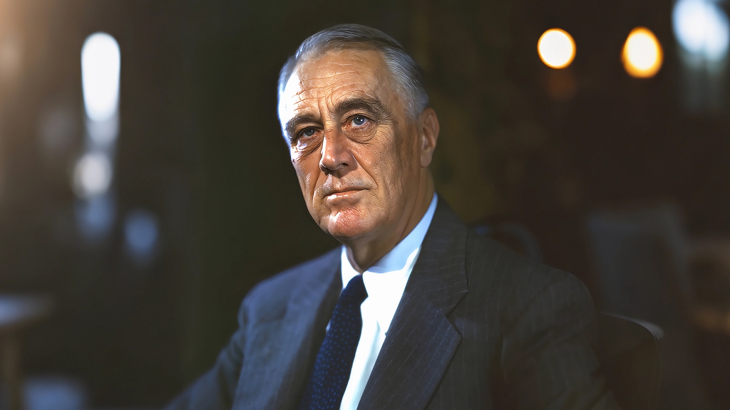 富兰克林·德拉诺·罗斯福(Franklin Delano Roosevelt,1882年1月30日—1945年4月12日),美国第32任总统(1933年—1945年),民主党人,是美国历史上唯一连任四届的总统,也是20世纪全球极具影响力的政治家之一。他执政期间,面对美国历史上最严重的经济大萧条和第二次世界大战两大重大危机,推行了以“新政”为核心的系列改革举措,成功带领美国走出经济困境;在二战中,他领导美国联合反法西斯同盟,为反法西斯战争的胜利作出了关键贡献。罗斯福秉持“无所畏惧”的执政理念,通过扩大联邦政府权力、完善社会保障体系等举措,深刻重塑了美国的经济与政治格局,其思想与政策对美国乃至全球都产生了深远且持久的影响,被美国《时代》杂志评为“20世纪最具影响力的100人”之一。