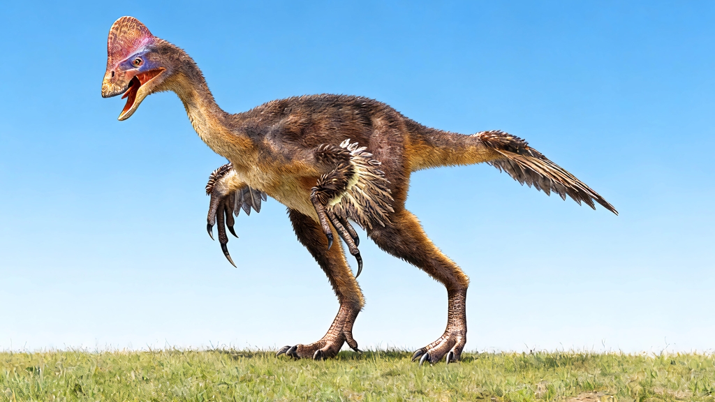 其羽毛与体型的演化高度适配生存需求:羽毛既用于体温调节,适应温暖湿润的气候,也可在奔跑与跳跃时提供辅助;粗壮的后肢与灵活的前肢结合,使其既能快速逃生,又能高效觅食,展现出对晚白垩世北美内陆平原环境的完美适应。