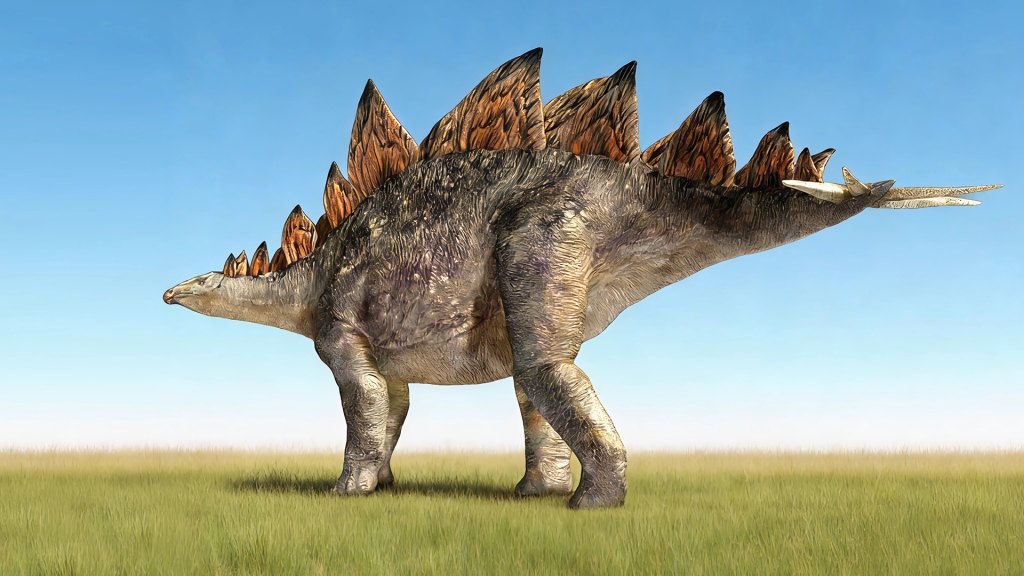 2. 尾部骨刺构造:尾部后端的4-6枚骨刺是剑龙的核心防御武器,骨刺长30-60厘米,直径5-8厘米,呈圆锥形,尖端锋利,质地坚硬,与尾部脊椎牢固连接,周围附着发达肌肉群,可通过尾部快速摆动实现横扫攻击,威慑或重创捕食者。骨刺数量与长度随年龄增长逐渐稳定,成年个体骨刺威力达到巅峰。